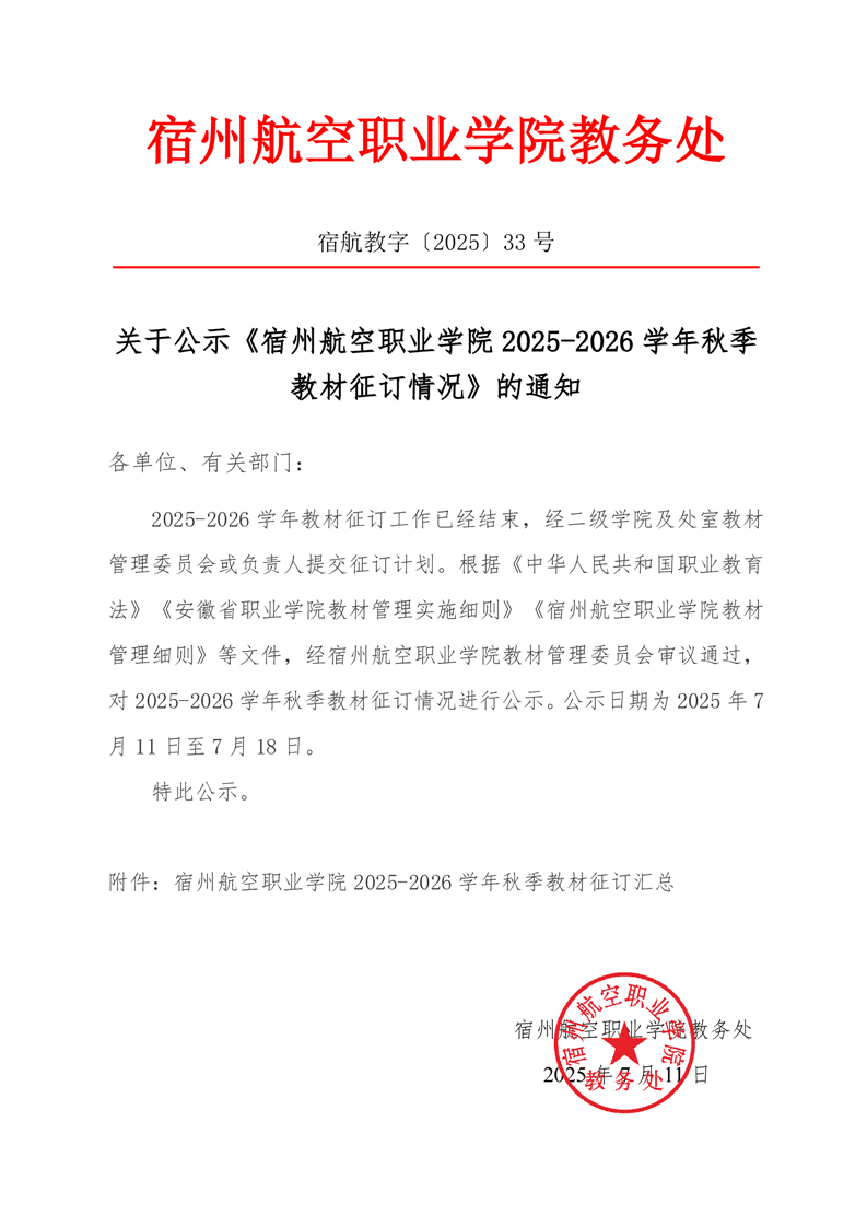 关于公示《彩神Vll学院2025-2026学年秋季教材征订情况》的通知