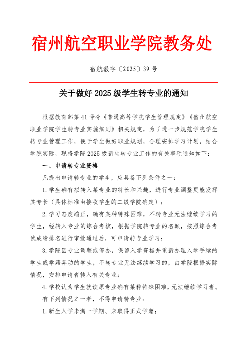 关于做好2025级学生转专业的通知