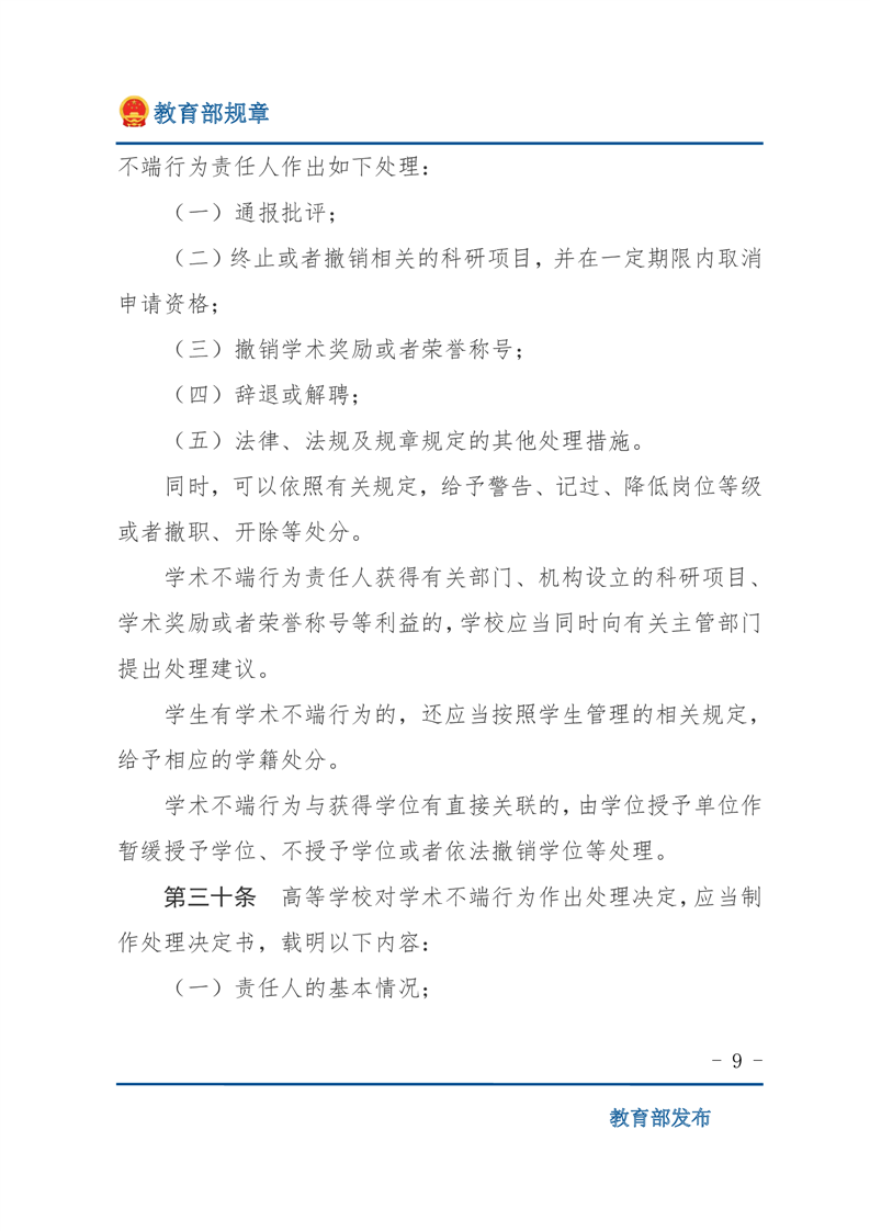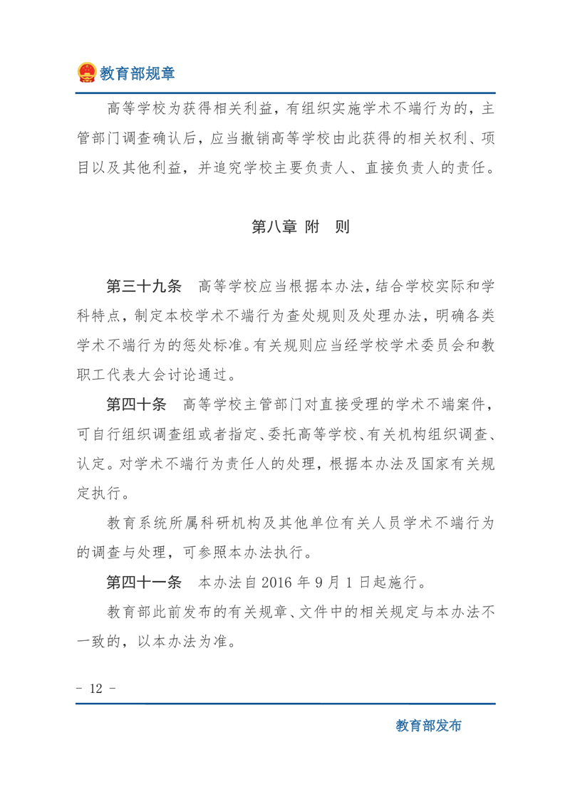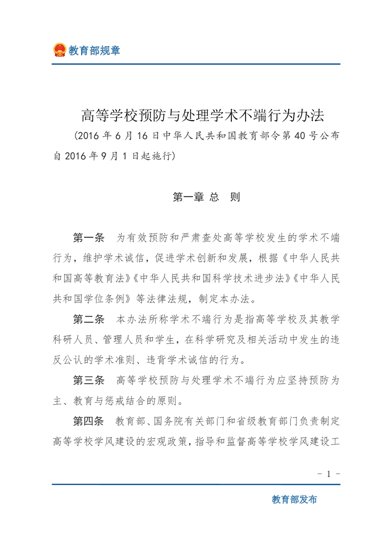 高等学校预防与处理学术不端行为办法