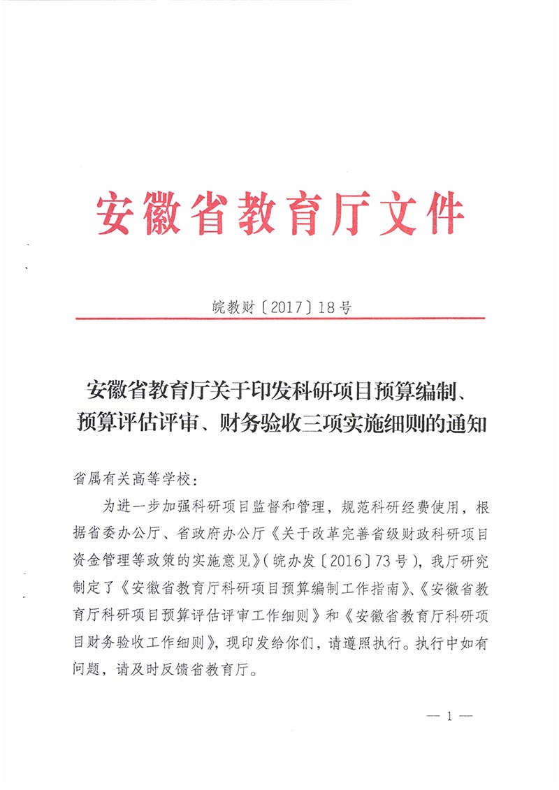 安徽省教育厅关于印发科研项目预算编制、预算评估评审、财务验收三项实施细则的通知