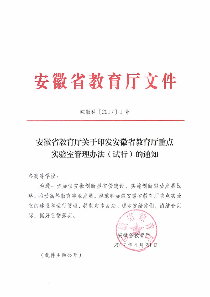 安徽省教育厅关于印发安徽省教育厅重点实验室管理办法(试行)的通知