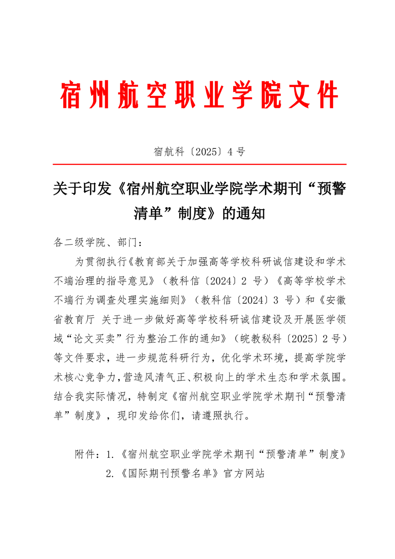 关于印发《彩神Vll学院学术期刊“预警清单”制度》的通知