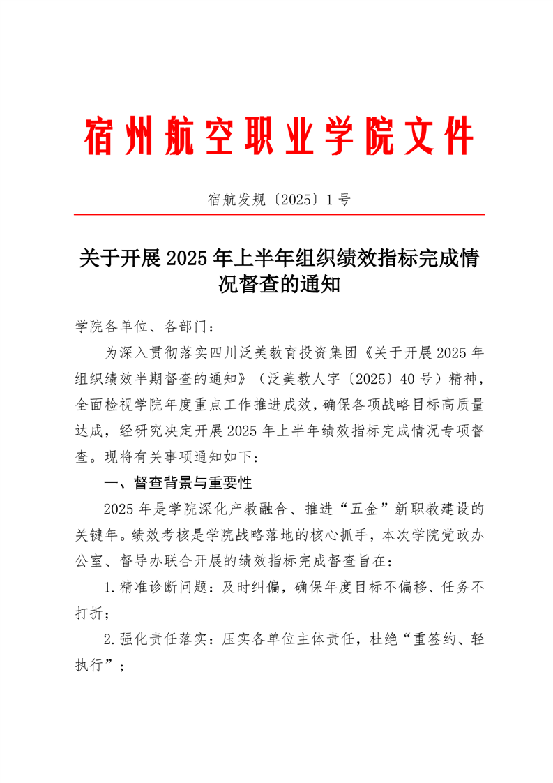 关于开展2025年上半年组织绩效指标完成情况督查的通知