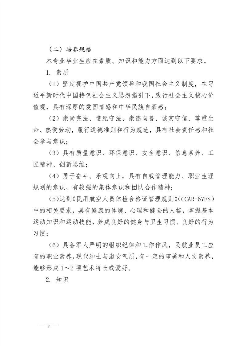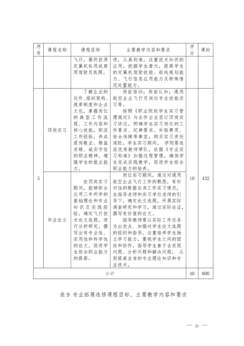 2021级定翼机驾驶技术专业人才培养方案