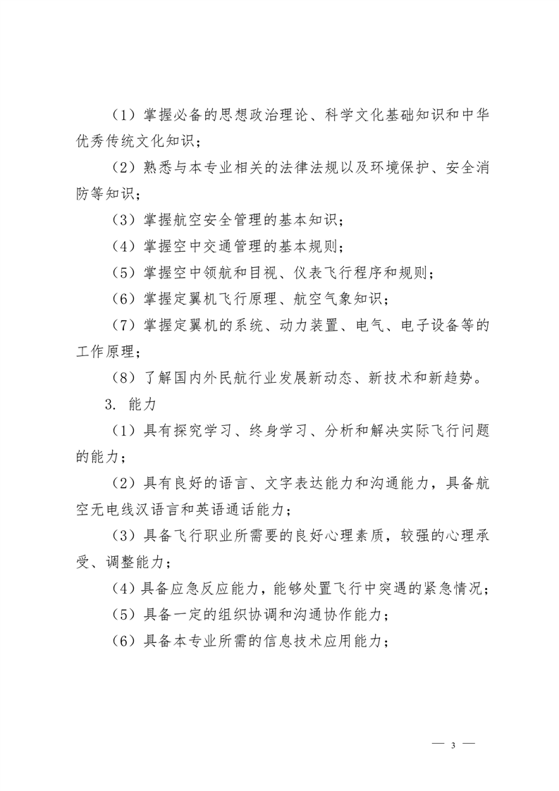 定翼机驾驶技术专业2022级人才培养方案