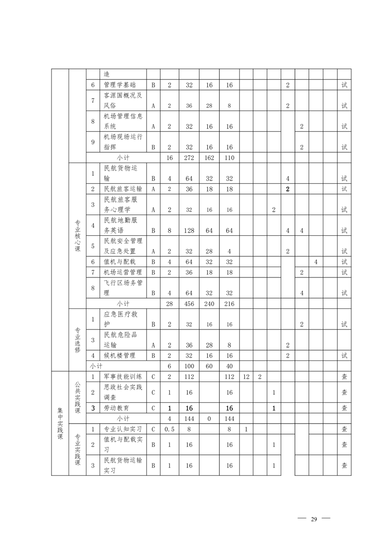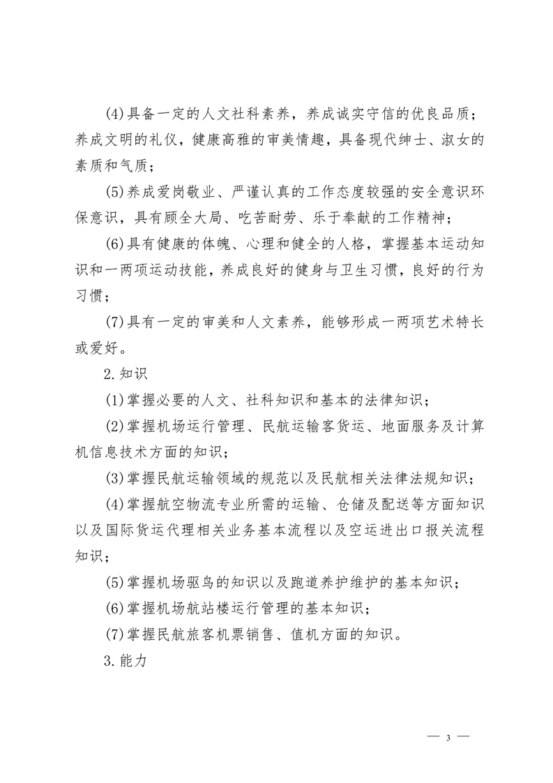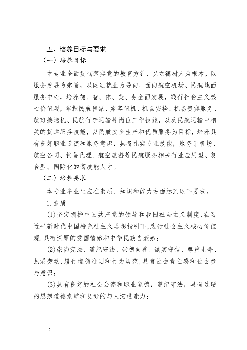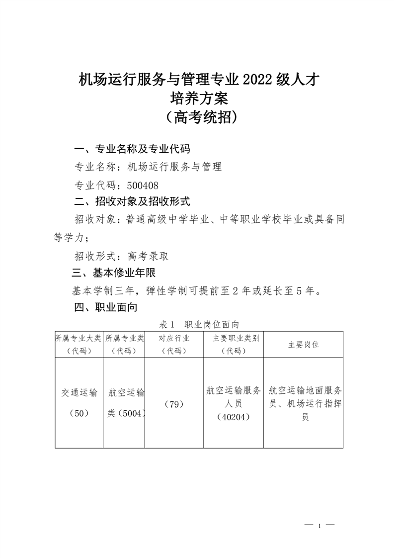 机场运行服务与管理专业2022级人才 培养方案(高考统招)