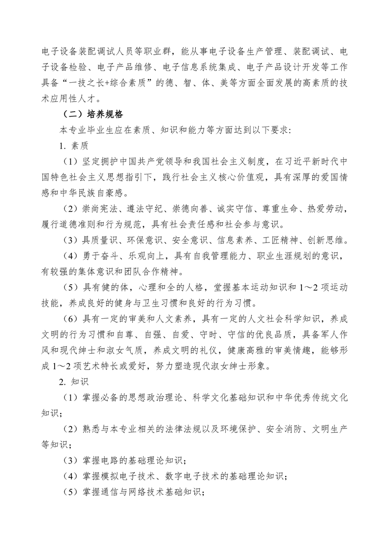 彩神Vll学院电子信息工程技术专业 2023 级人才培养方案(高考统招)