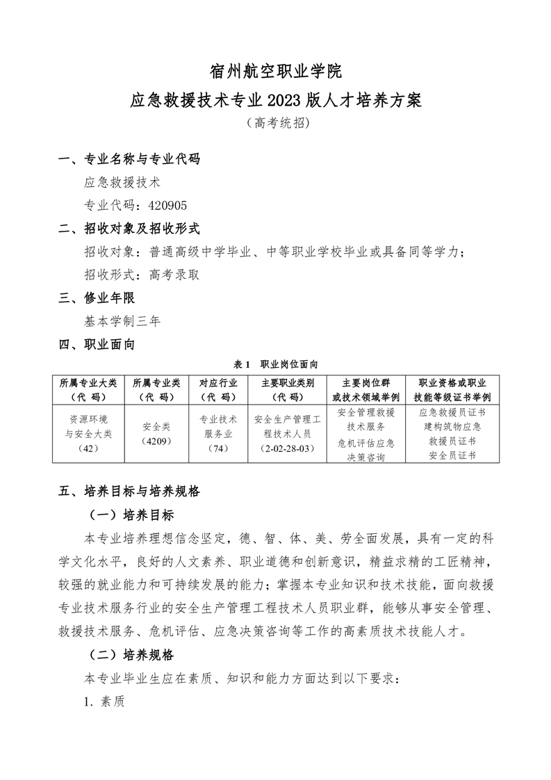 彩神Vll学院应急救援技术专业 2023 版人才培养方案(高考统招)