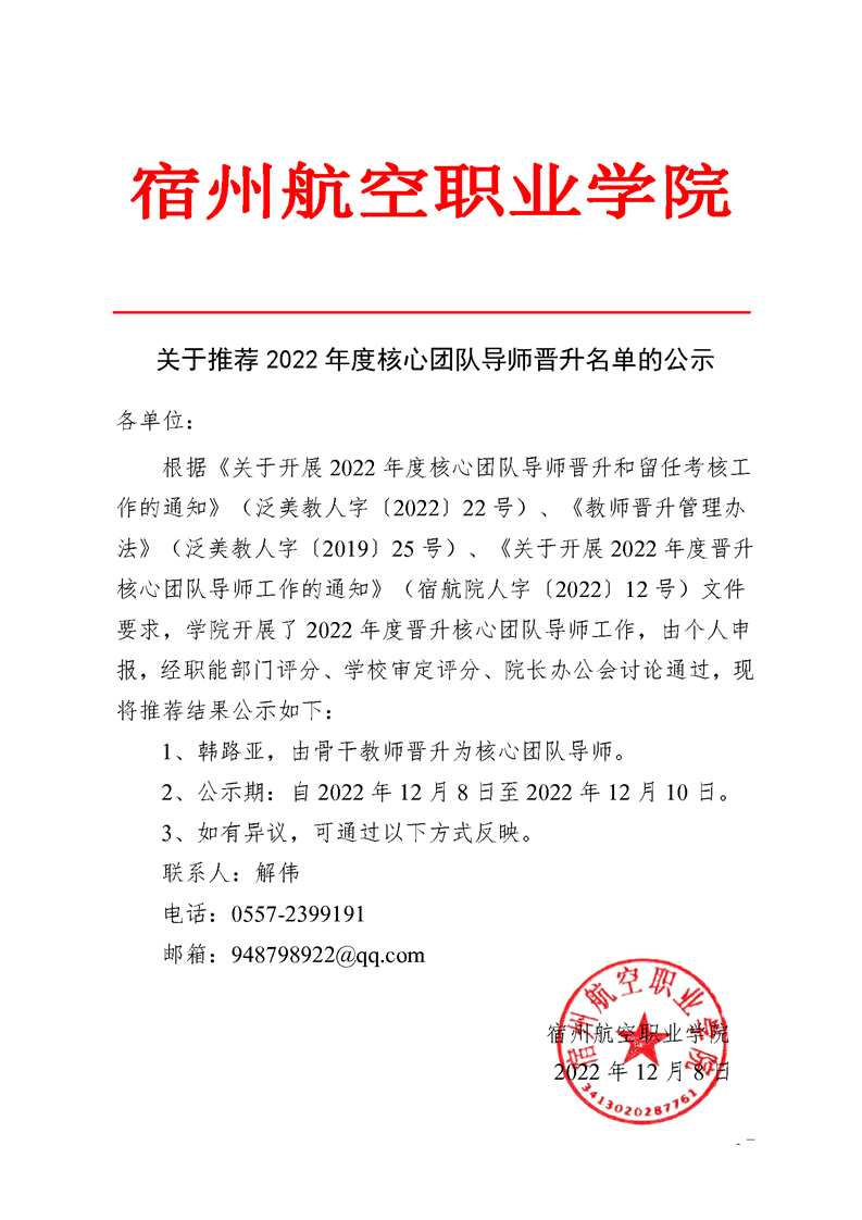 关于推荐2022年度核心团队导师晋升名单的公示