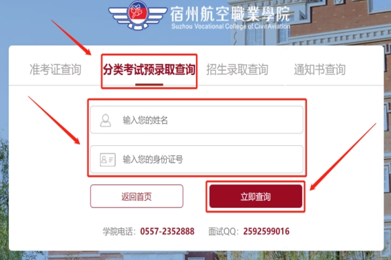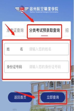 2.进入后点击“分类考试预录取查询”🏪,根据提示填写学生姓名及身份证号码,填写正确后,点击下方“立即查询”;
