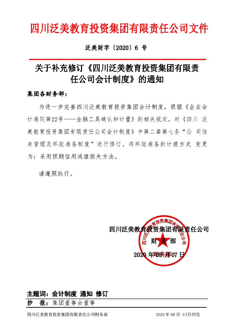 关于补充修订《四川泛美教育投资集团有限责任公司会计制度》的通知