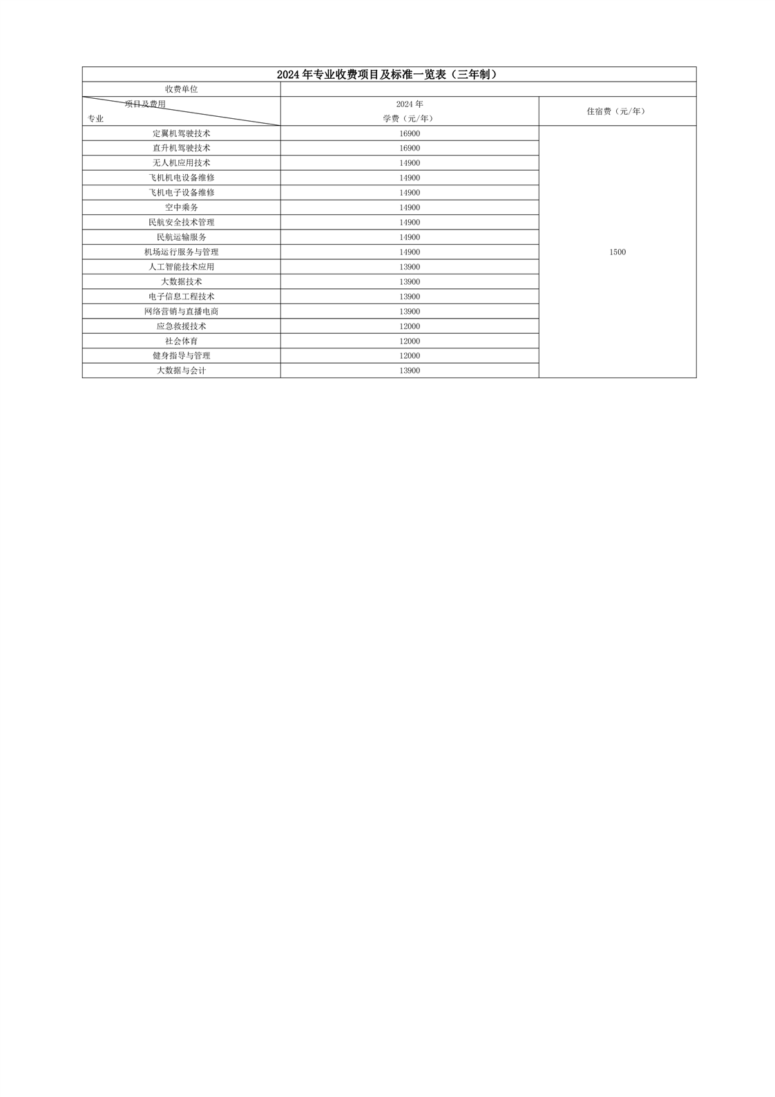 2024年专业收费项目及标准一览表(三年制)