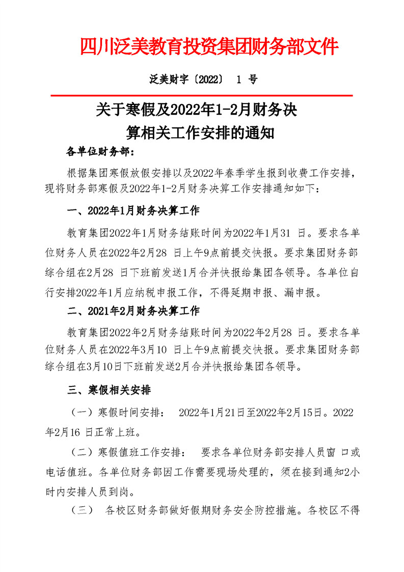 • 关于寒假及2022年1-2月财务决算相关工作安排的通知
