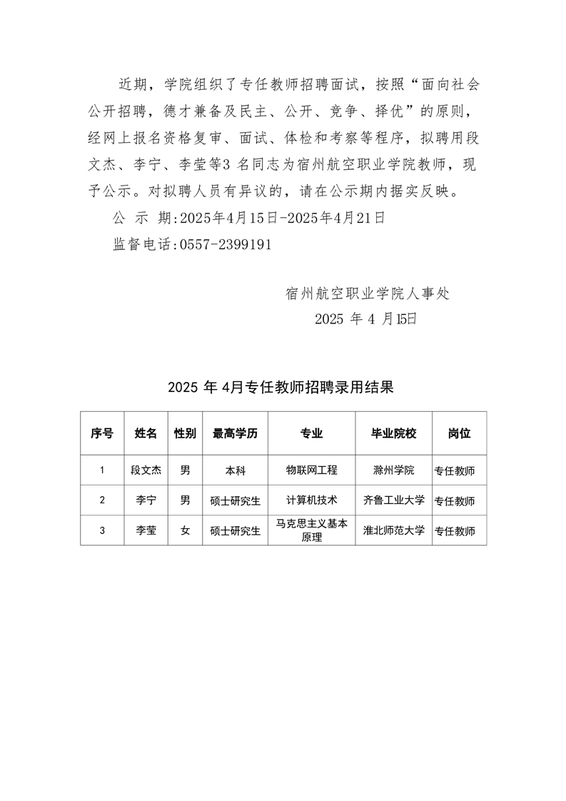 彩神Vll学院2025年4月专任教师、辅导员招聘录用公示