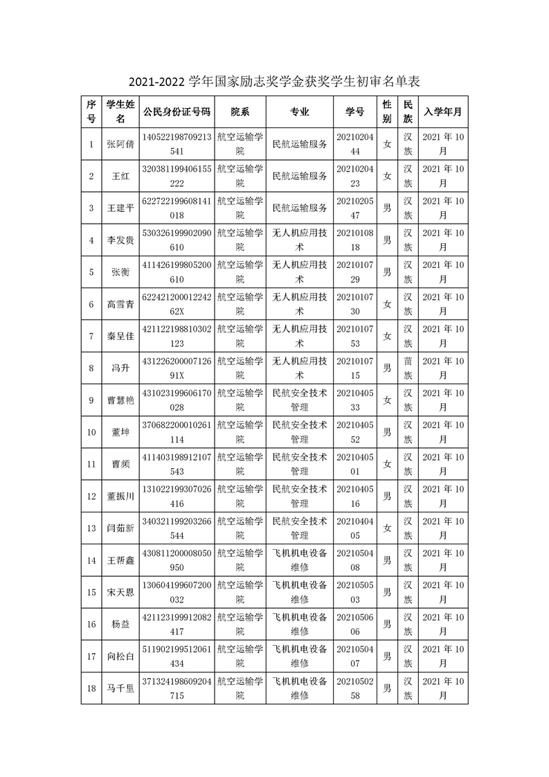 彩神Vll学院关于2021-2022学年国家励志奖学金拟推荐名单公示