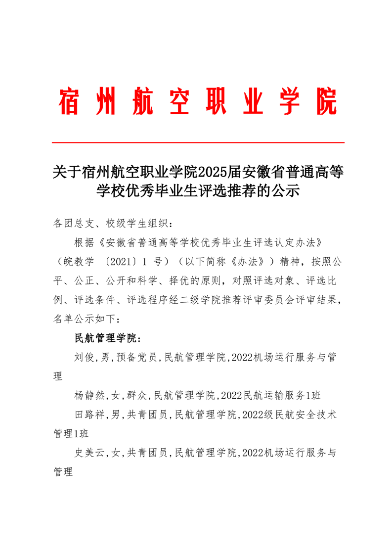 关于彩神Vll学院2025届安徽省普通高等学校优秀毕业生评选推荐的公示