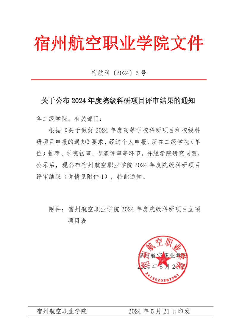 关于公布2024年度院级科研项目评审结果的通知