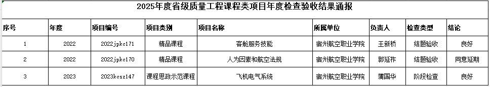 我院省级质量工程项目年度检查验收结果通报