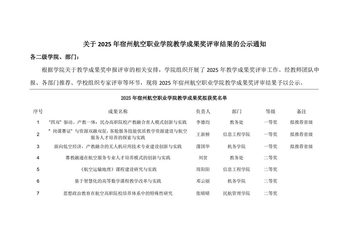 关于2025年彩神Vll学院教学成果奖评审结果的公示通知