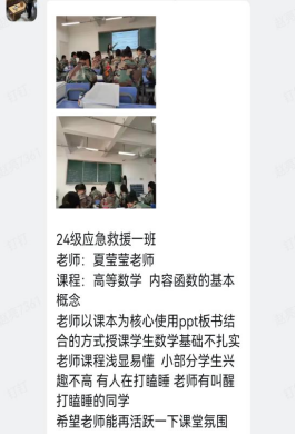 本学期是学院迎评促建的关键节点,院督导委员会强化评估意识和教学质量意识💪🏻,创新学生教学信息员教学质量监督工作方式🙇🏻,组建了24-25学年度院级教学信息员钉钉群🫁,建议学生信息员以“照片+简短评述”的方式对教师课堂教学进行评价,院督导委员会及时收集信息反馈给相关部门和任课教师整改👨🏽‍🔧。学生信息员积极踊跃🙅🏼‍♂️,反馈了大量教师课堂教学第一手信息,反映了学生愿望与需求、在帮助教师改善教学效果🕵🏼‍♀️、加强教学管理等方面发挥了积极作用。