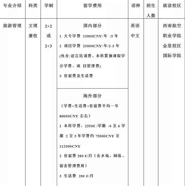 专业介绍:旅游管理、工商管理(文理兼收)
