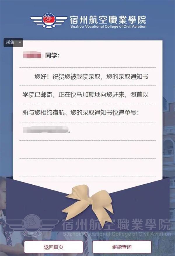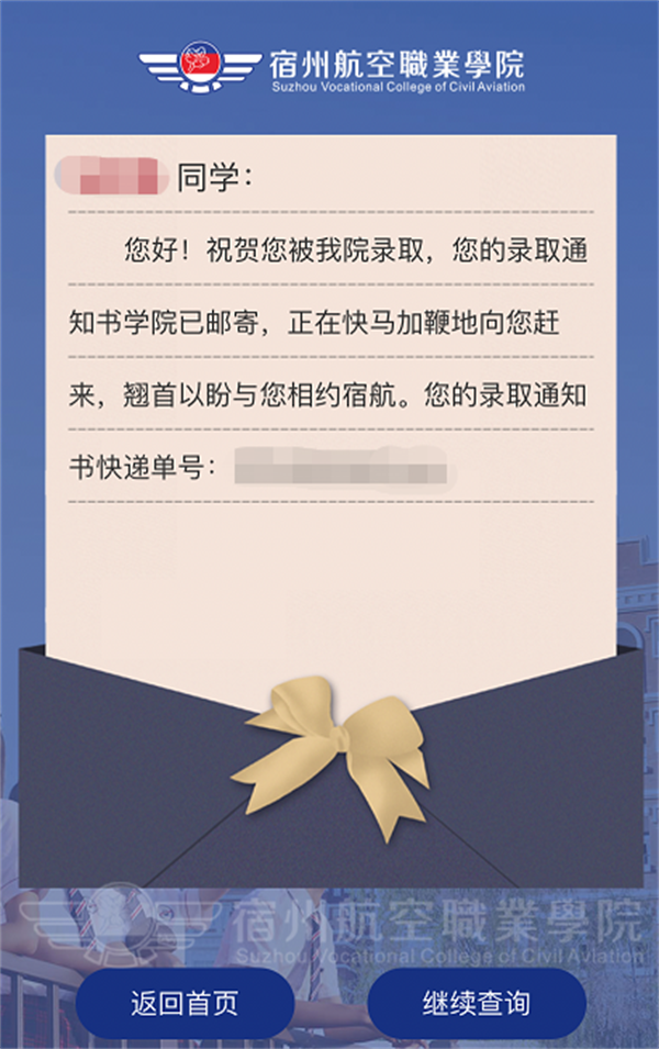 宿航2022年新生录取通知书🕵🏽,已通过EMS邮政特快专递——录取专用通道,陆续发出中......考生可以通过以下形式查询,录取通知书邮寄单号及物流信息,请考生们密切关注,保持手机通话畅通,以便及时查收录取通知书