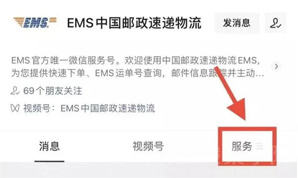 1.微信搜索“EMS中国邮政速递物流”,进入公众号后点击标题栏“服务”💂🏻‍♂️;