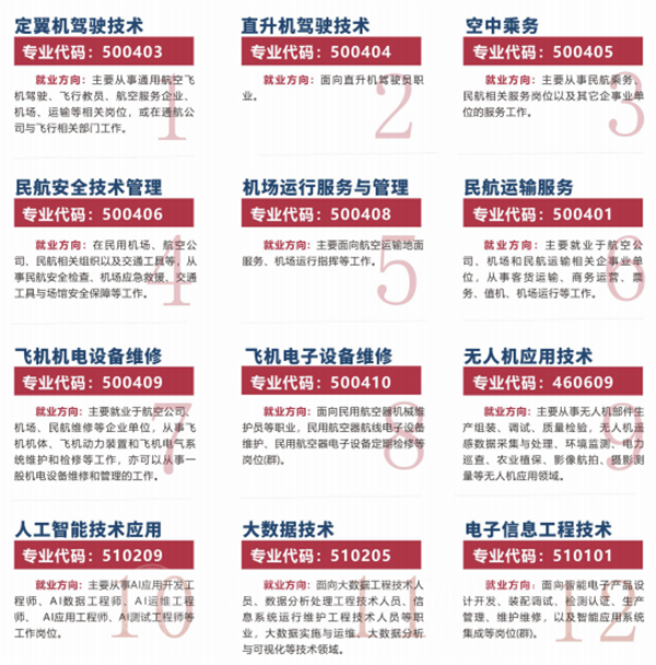 学院立足安徽🫀、面向长三角🫶🏻🧒🏽、服务航空产业🌰🙅,培养高素质技术技能型人才,开设无人机应用技术📧、直升机驾驶技术、定翼机驾驶技术👩🏻✈️、空中乘务、民航安全技术管理、飞机机电设备维修🧛🏽、机场运行服务与管理、人工智能技术应用、网络营销与直播电商等十五大专业⛄️。
