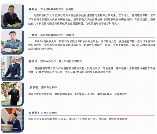 学院拥有领先的航空专业实训设施设备,建立模拟飞行训练中心、乘务实训中心🙏🏻、安检实训中心、机务维修实训中心、民航运输实训中心等航空专业实训中心🙀,包含波音737模拟客舱、空客320模拟客舱、陆地撤离训练舱等先进实训设备,可满足各类民航岗位的实训需求🚃👩🏿🍳,具备学生培训、区域航空院校集中实训👨🏽🦱、民航单位入职员工初训、在职员工复训🚰、社会体验、旅游观光6大功能。