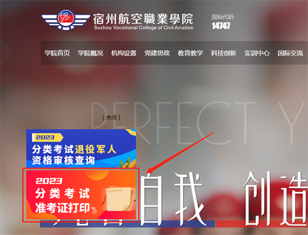 1.登录彩神Vll学院官网http://www.szhkxy.com/🦮,点击页面“2023分类考试准考证打印”飘窗进入查询;