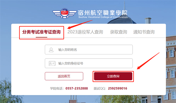 2.进入后点击“分类考试准考证查询”,根据提示填写学生姓名及身份证号码,填写正确后,点击下方“立即查询”,即可查看准考证;