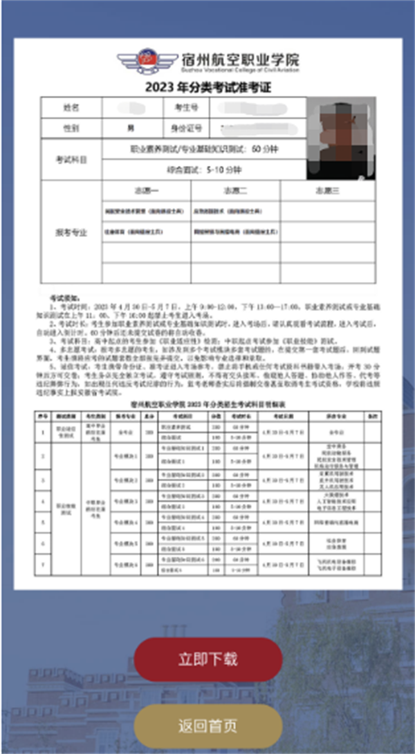 3.登录后,请考生仔细核对个人信息,核对无误后🤘🏿,点击下方“立即下载”,下载完成后👩🏿💼,即可保存图片🧎🏻,打印准考证。
