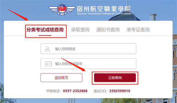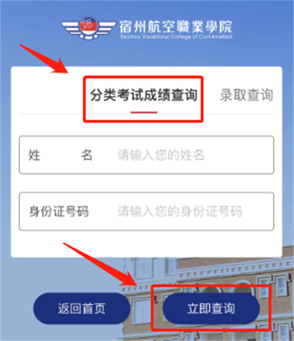 2.进入后点击“分类考试成绩查询”,根据提示填写“姓名”及“身份证号码”,填写正确后🧑🏻,点击下方“立即查询”;