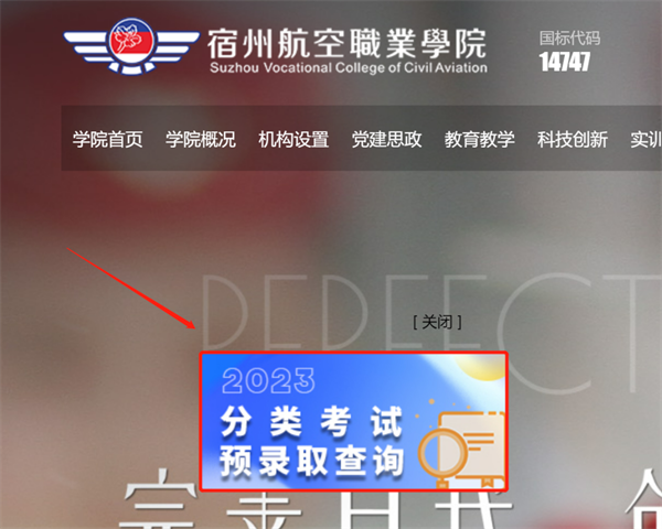 1.登录彩神Vll学院官网(/)💀,点击页面“2023分类考试预录取查询”飘窗进入查询;