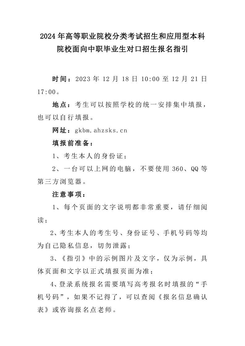 2024年高等职业院校分类考试招生和应用型本科院校面向中职毕业生对口招生报名指引