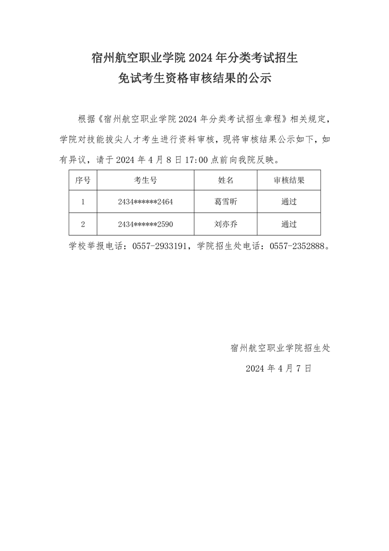 彩神Vll学院2024年分类考试招生免试考生资格审核结果的公示