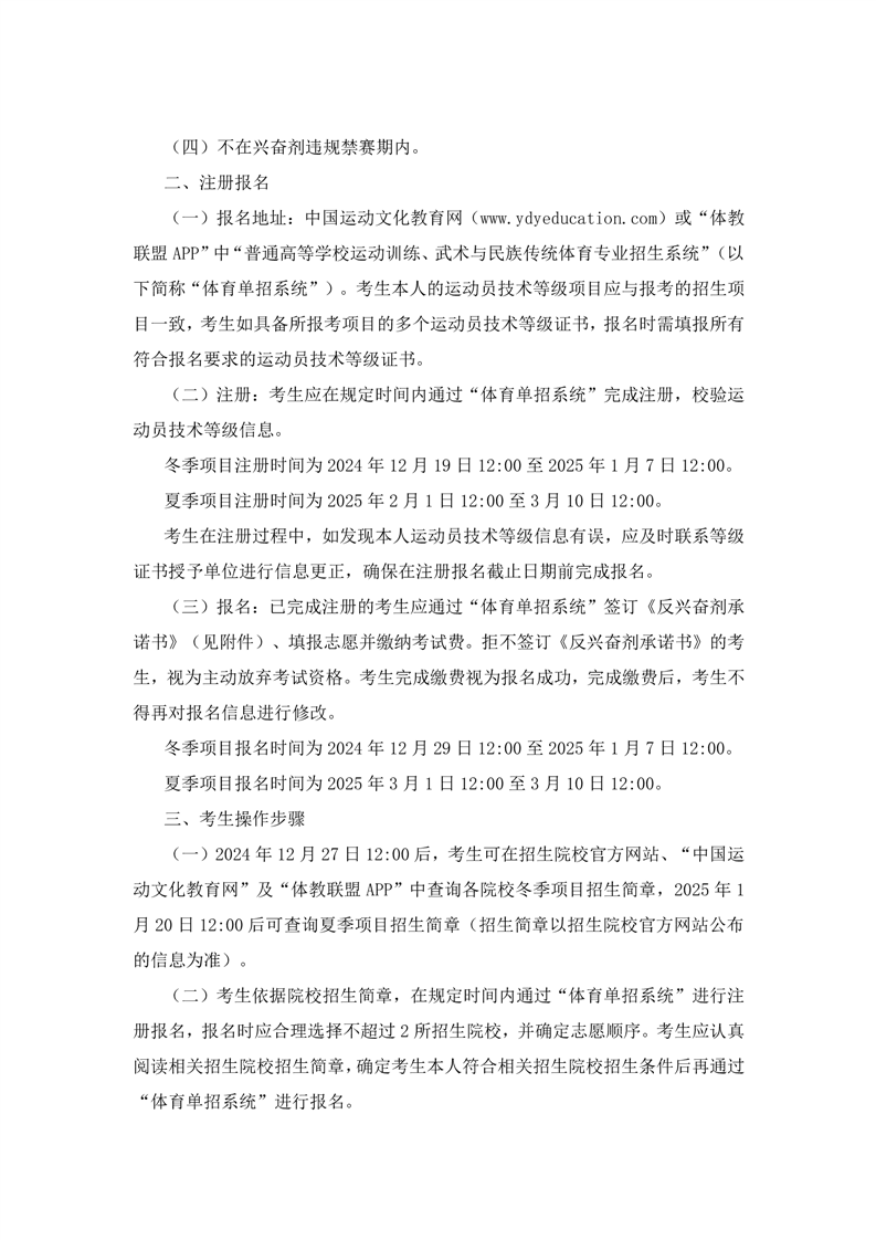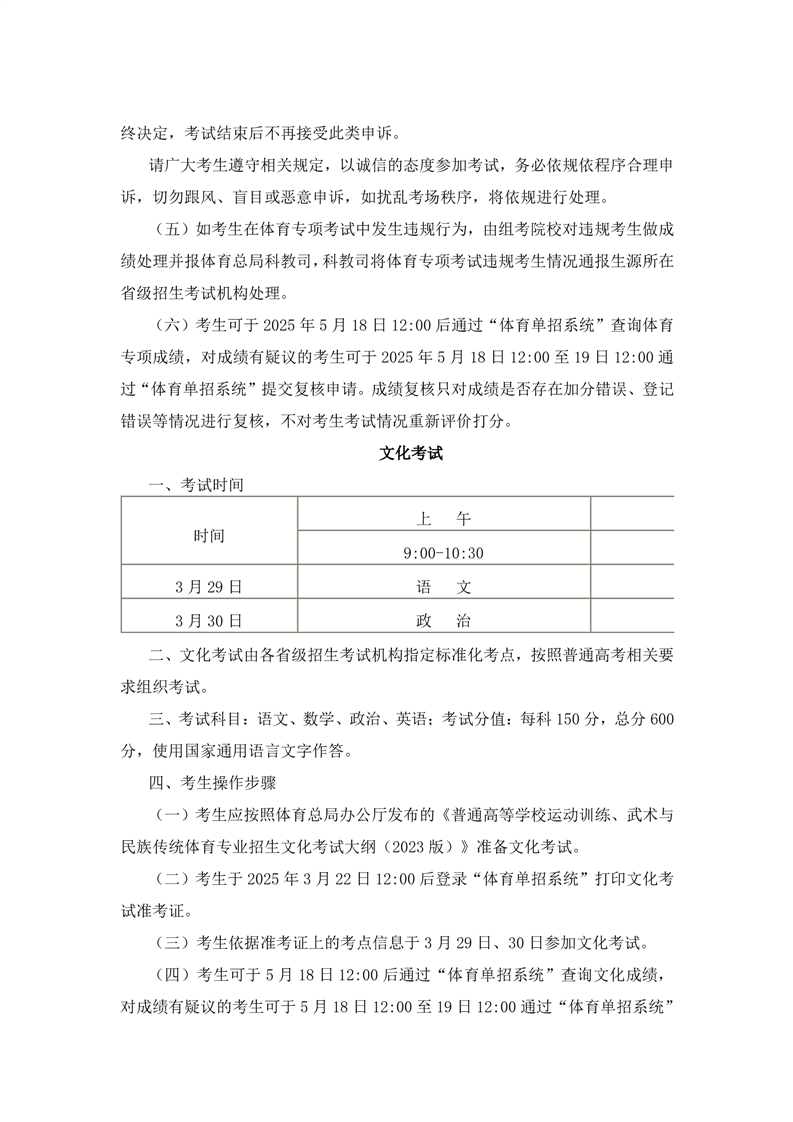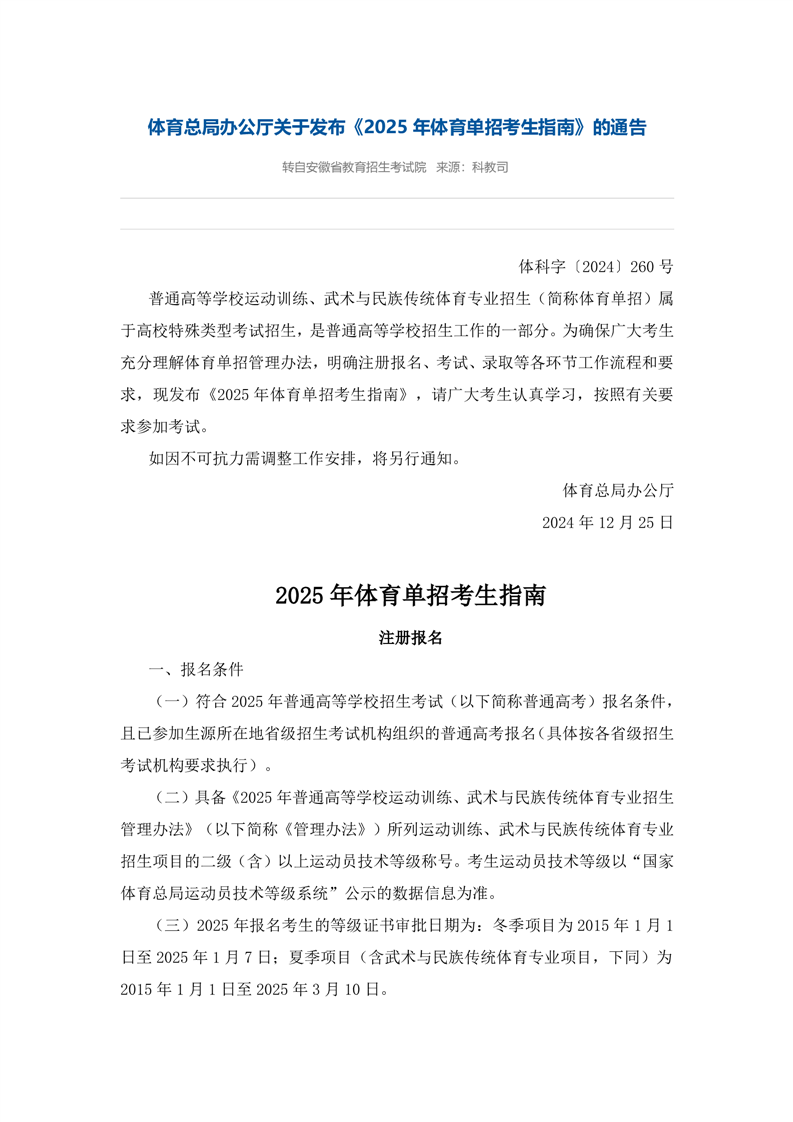 体育总局办公厅关于发布《2025年体育单招考生指南》的通告
