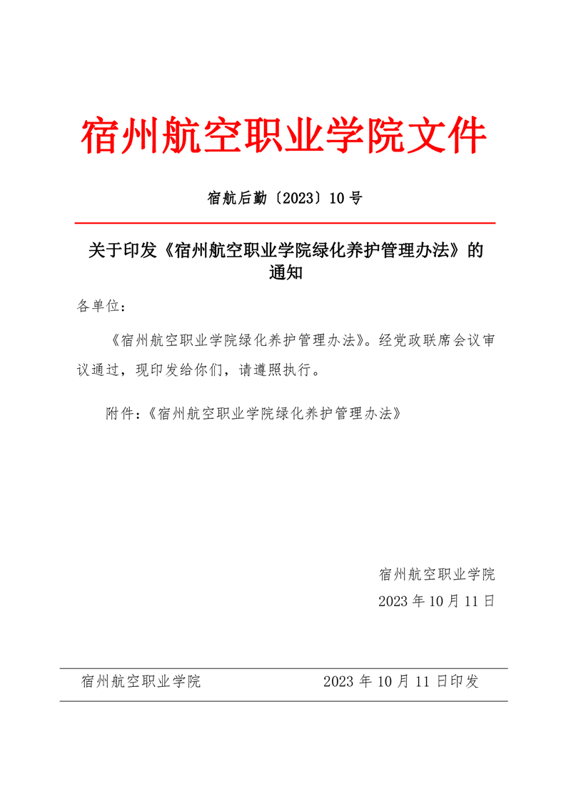 关于印发《彩神Vll学院绿化养护管理办法》的通知