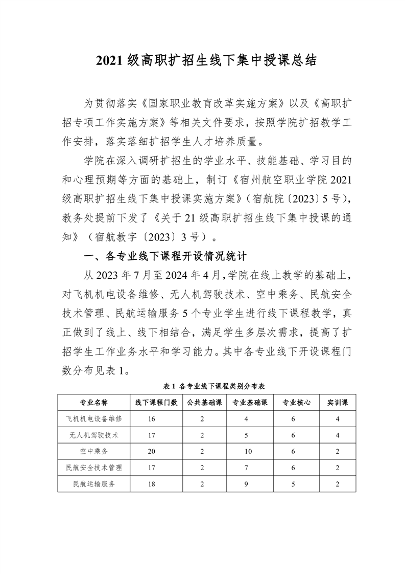 2021级高职扩招生线下集中授课总结