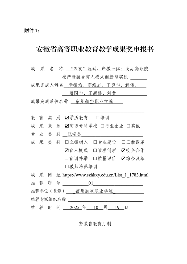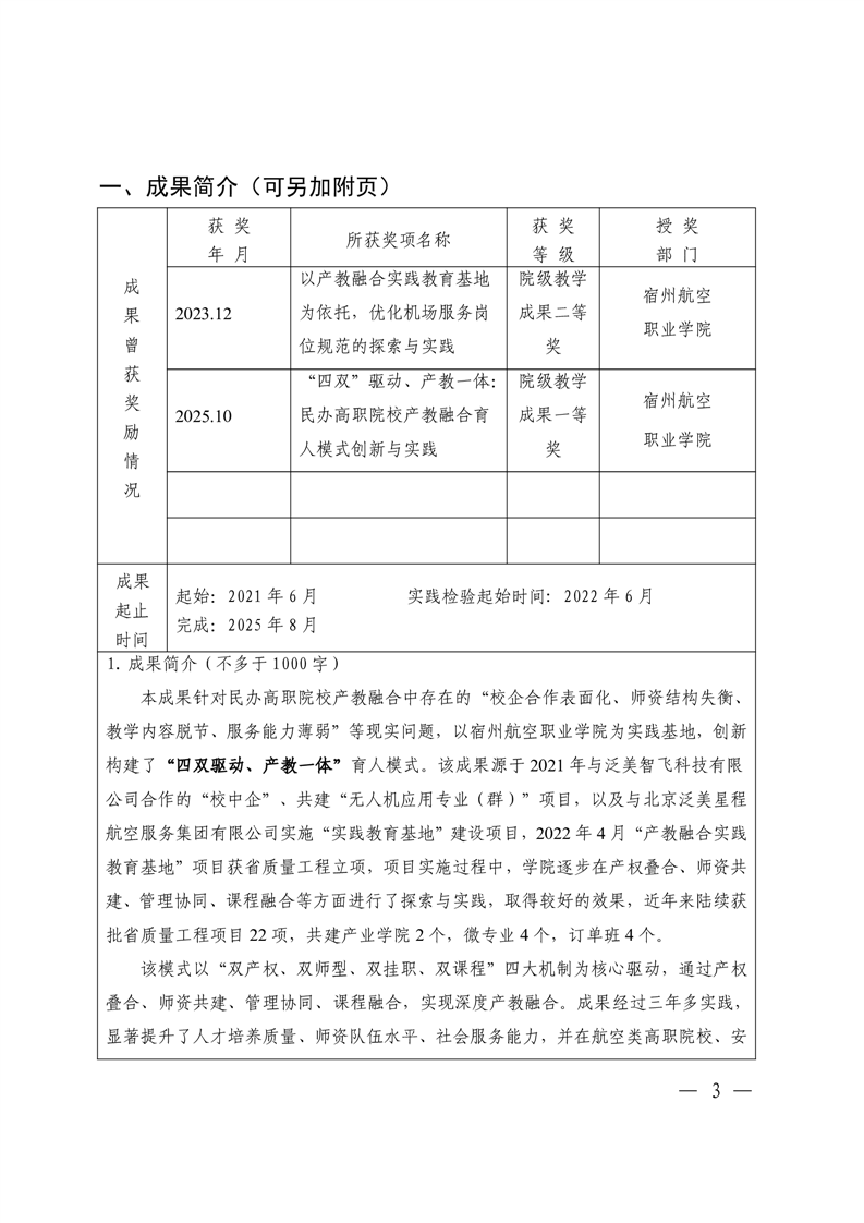 《四双驱动 产教一体,民办高职院校产教融合育人模式创新与实践》申报书