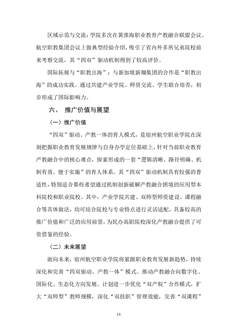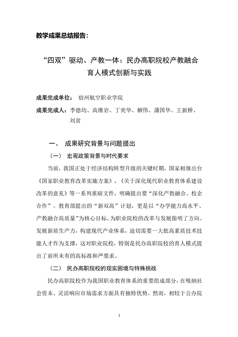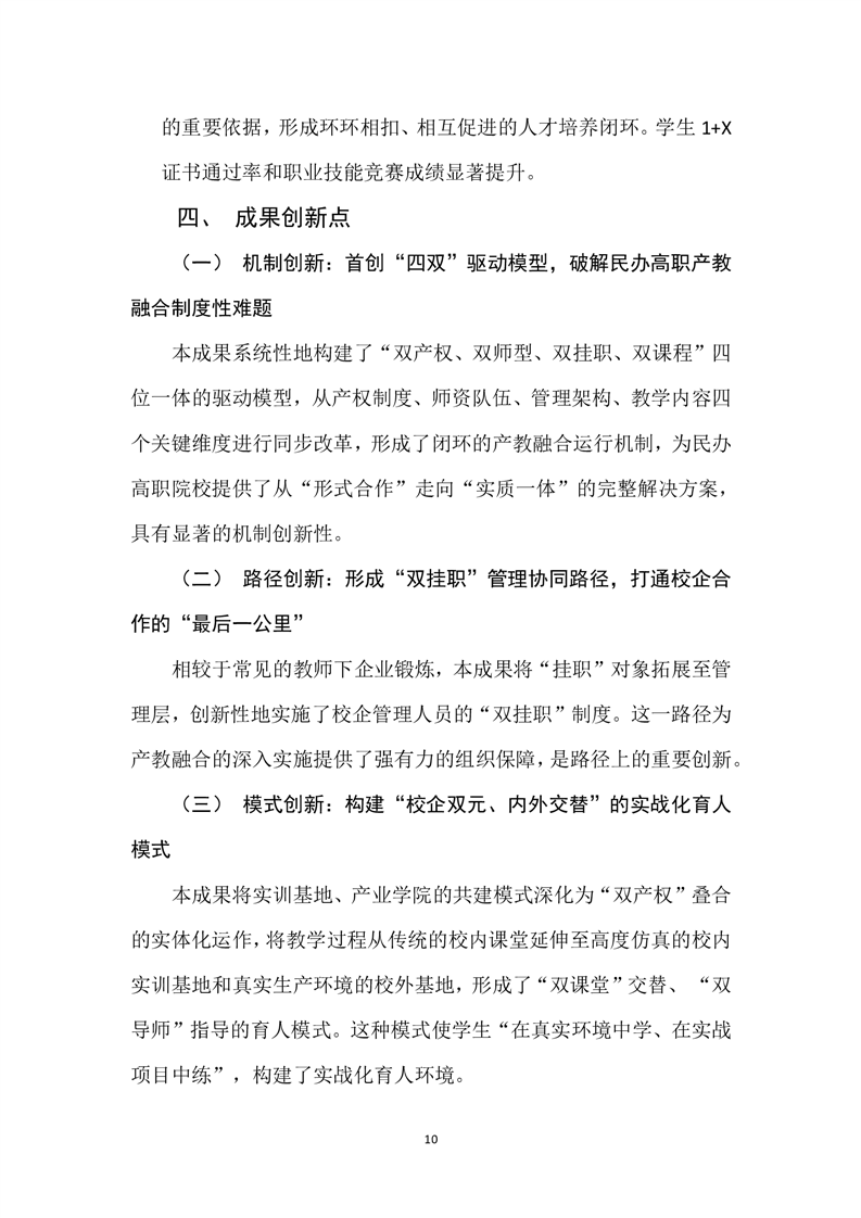 《四双驱动 产教一体,民办高职院校产教融合育人模式创新与实践》教学成果总结报告