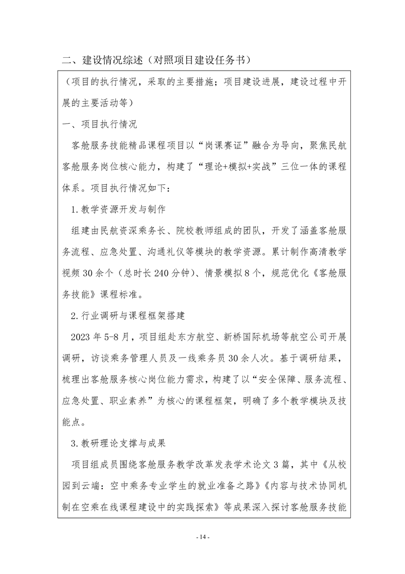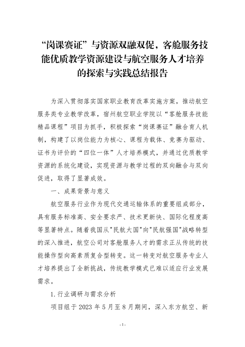 “岗课赛证”与资源双融双促,客舱服务技能优质教学资源建设与航空服务人才培养的探索与实践总结报告
