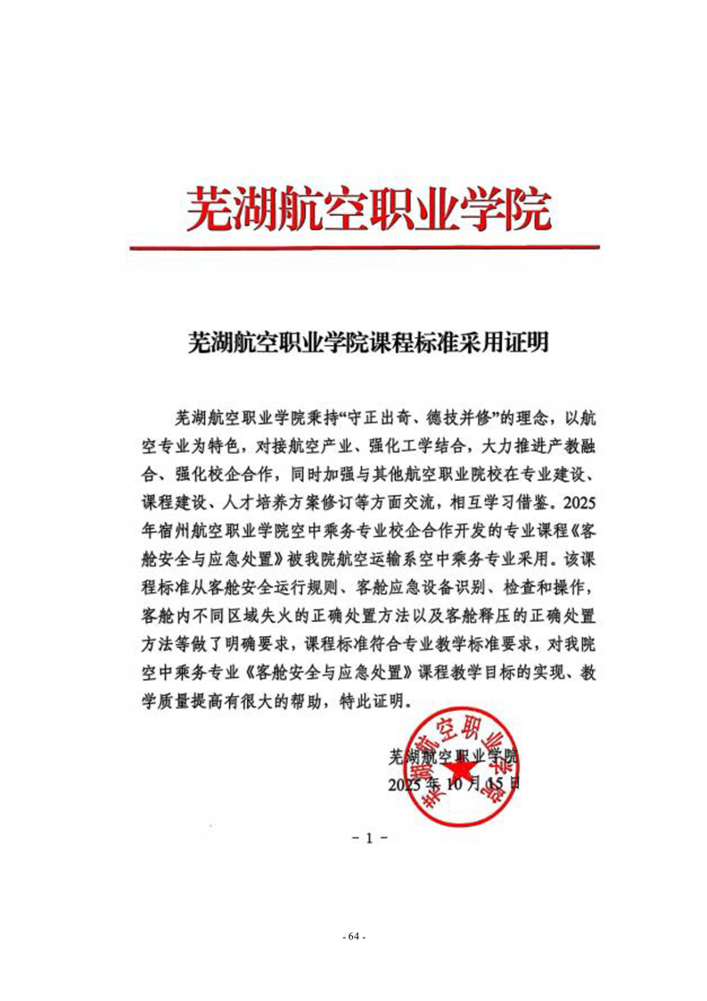“岗课赛证”与资源双融双促,客舱服务技能优质教学资源建设与航空服务人才培养的探索与实践佐证材料