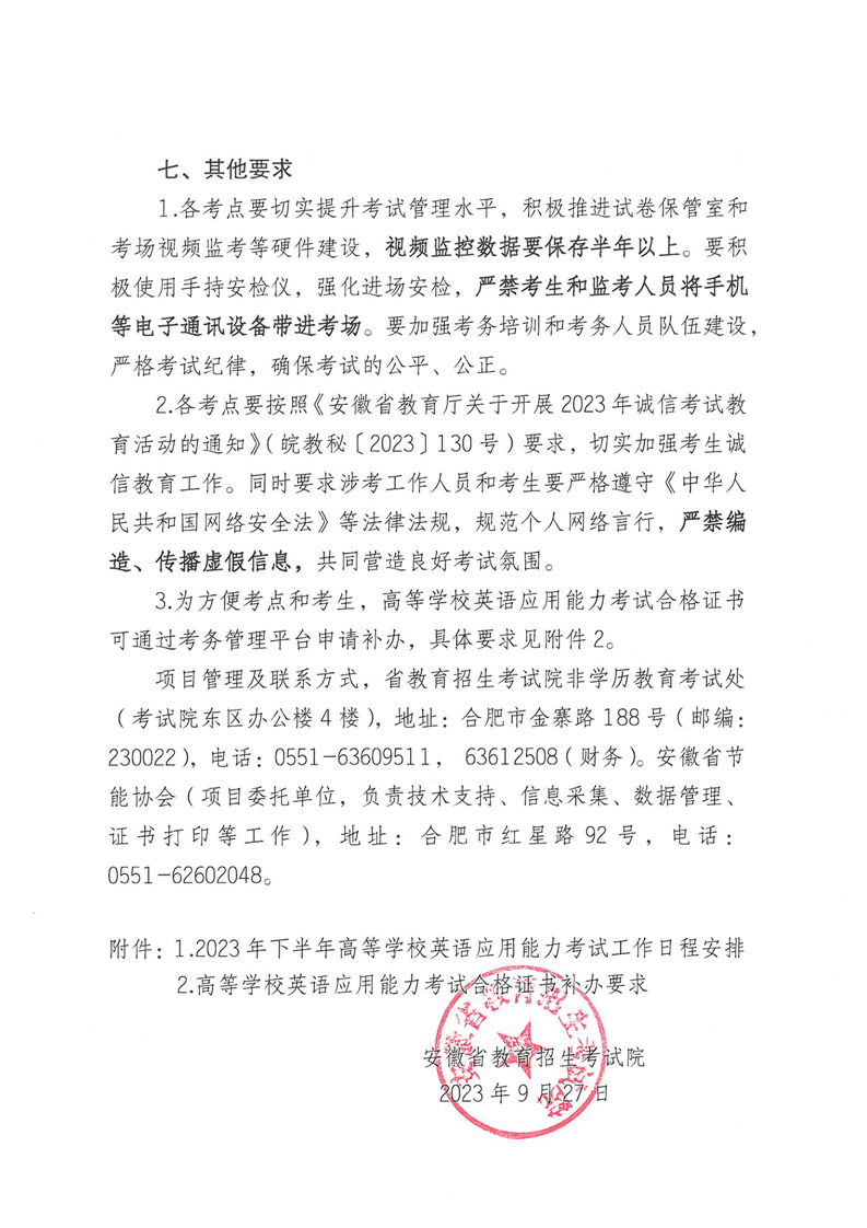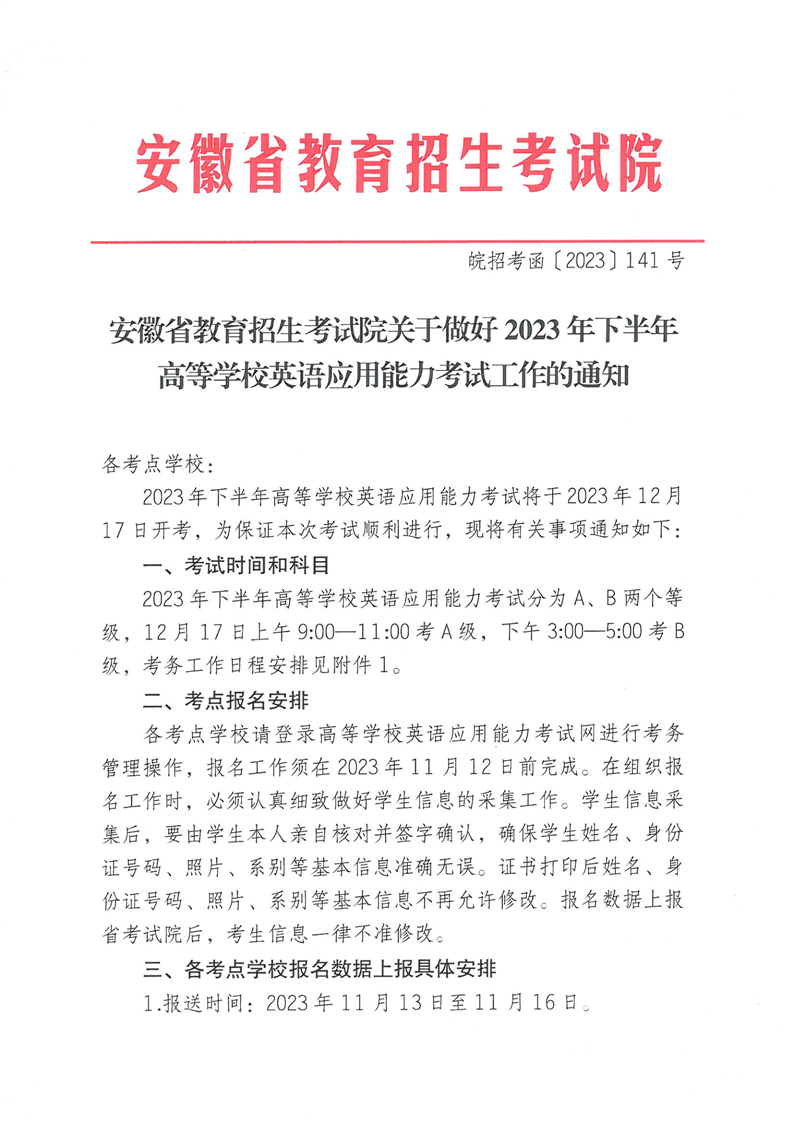安徽省教育招生考试院关于做好2023年下半年高等学校英语应用能力考试工作的通知
