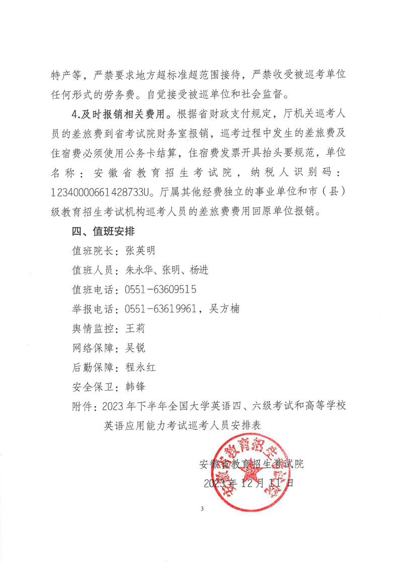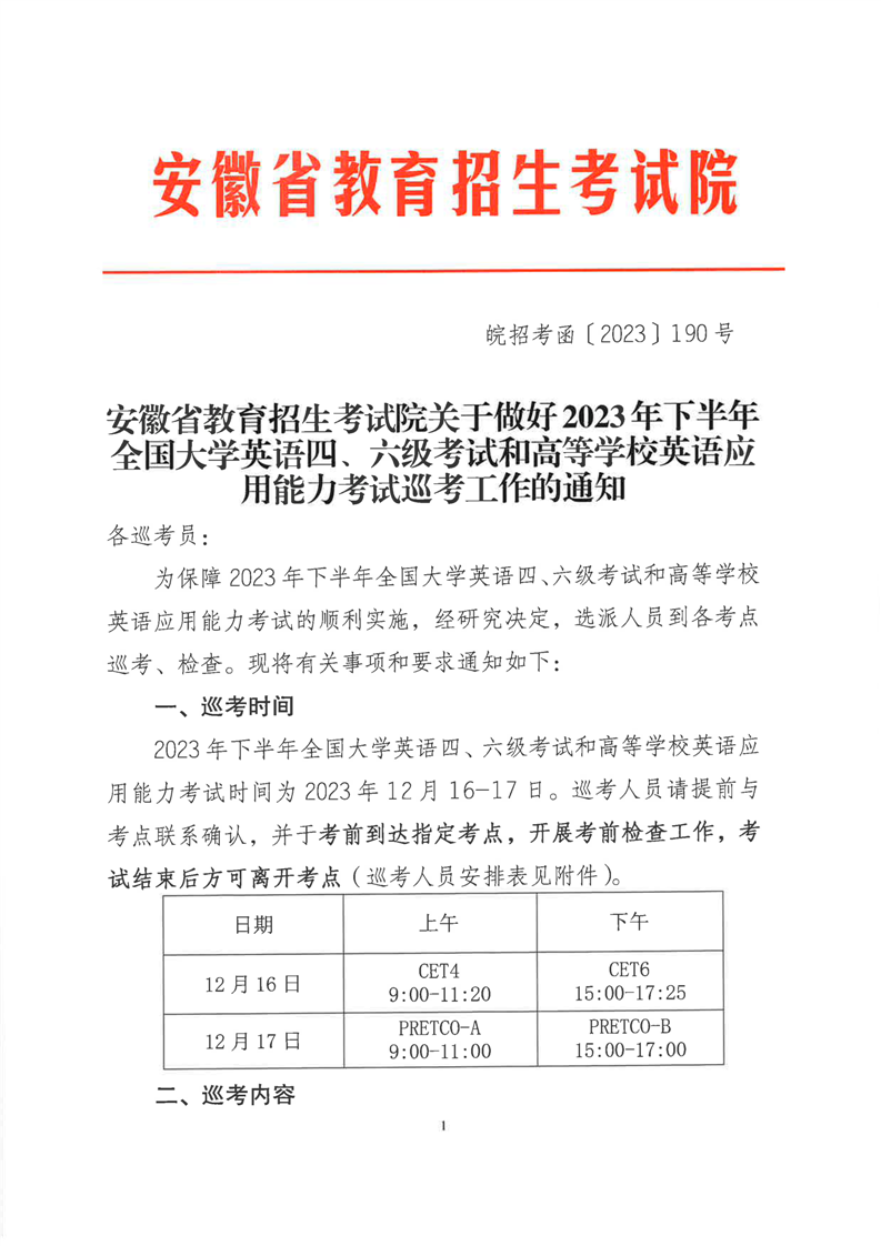 安徽省教育招生考试院关于做好2023年下半年全国大学英语四🚴🏿♀️、六级考试和高等学校英语应用能力考试巡考工作的通知