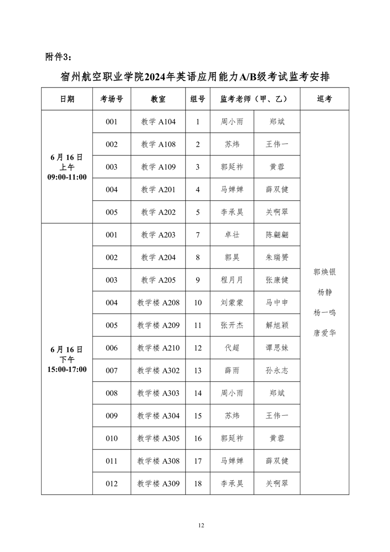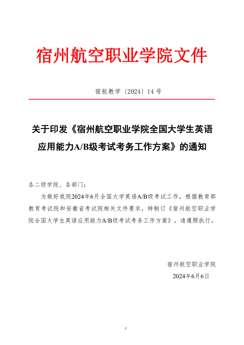 宿州航院英语AB考试通知
