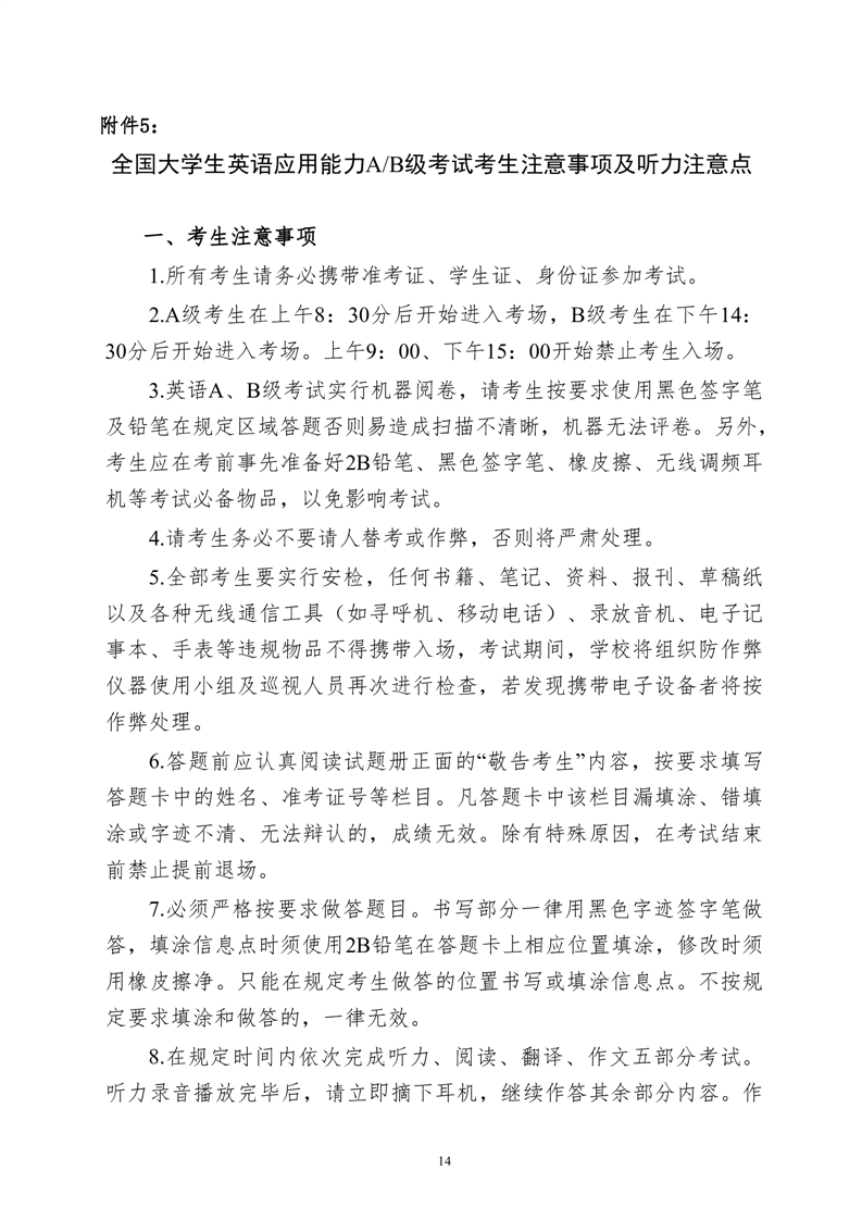 关于高等学校英语应用能力A、B级考试的通知