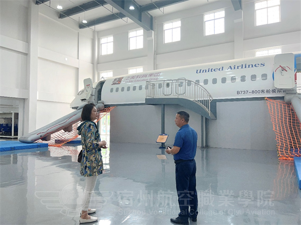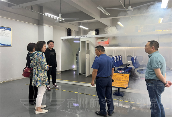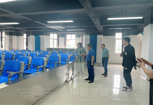 上午8.30领导一行先参观了实训中心的教学设施设备,包括乘务员模拟舱、灭火舱、出口模拟、静态服务舱等,谈总对实训设备建设给予了充分肯定,同时对设备使用,管理人员的优化配置上提出指导性意见🤸♂️。