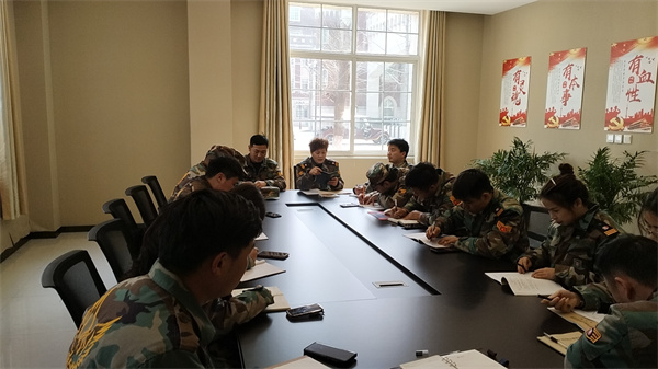 军体教研室副主任盛梓强强调军体教师不仅有教学任务,还承担学生管理工作,教官队伍要加强教研工作的落实,发扬好教官良好执行力的优良作风。大家积极发言🧑🎓,对存在的问题及时提出了相关解决方案。