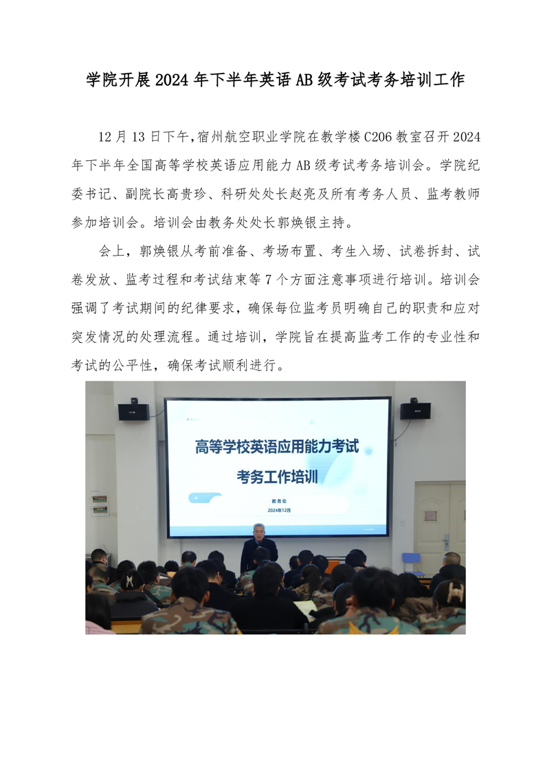 宿航院开展 2024 年下半年英语 AB 级考试考务培训工作